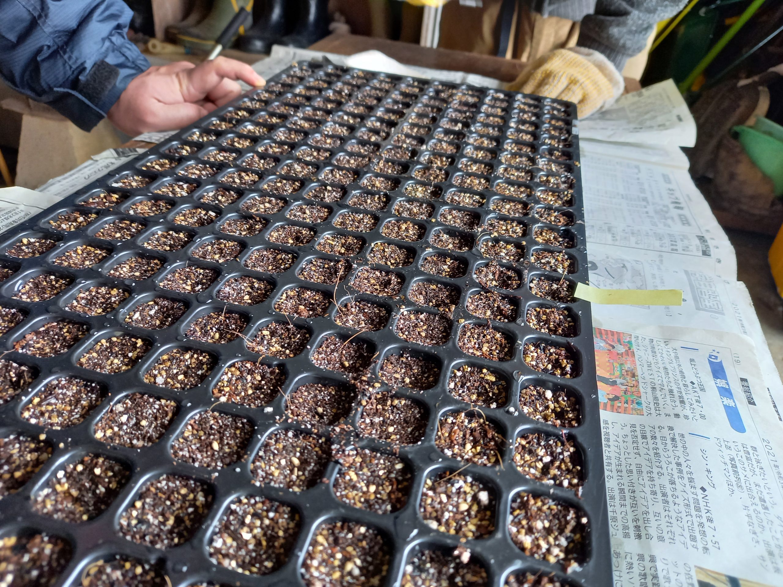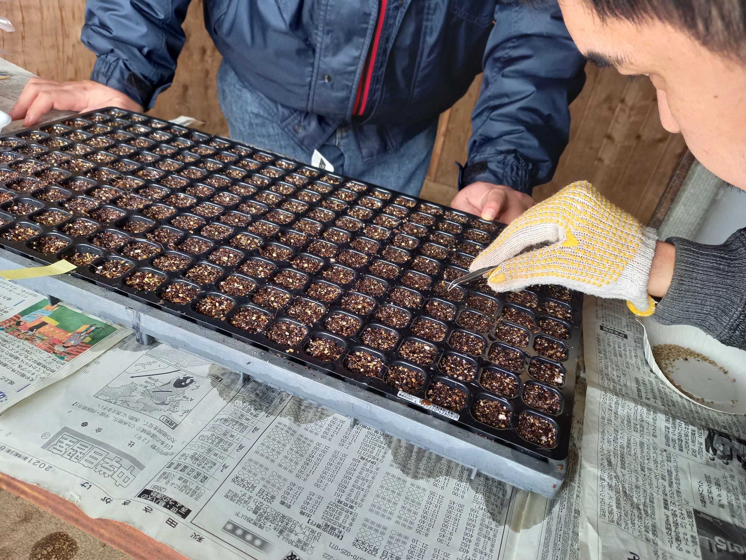 播種作業は支援員と利用者と一緒に一つずつ手作業で行いました。