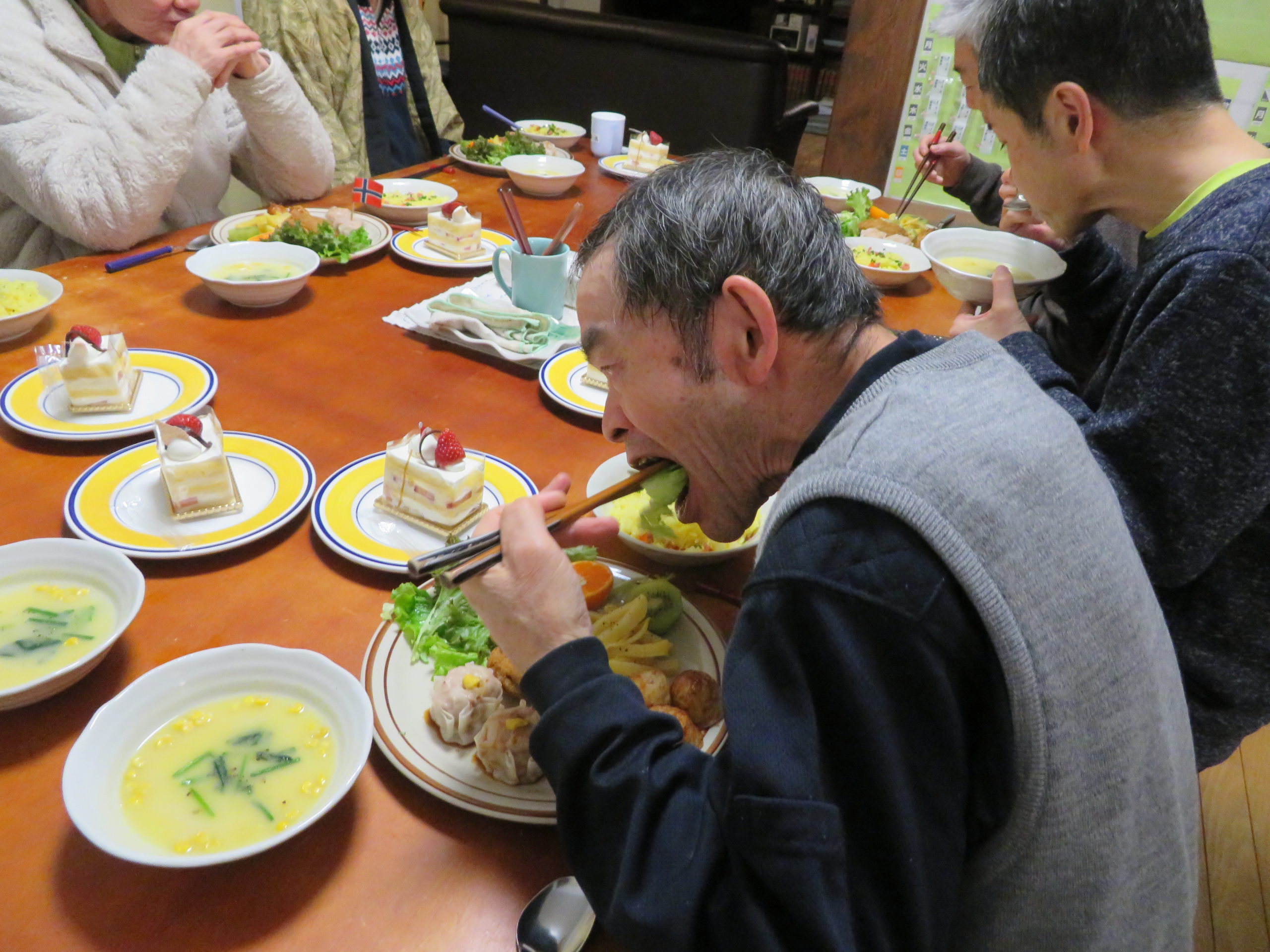 施設長や食工房のみんなが腕を振るったクリスマスプレートでお祝い!