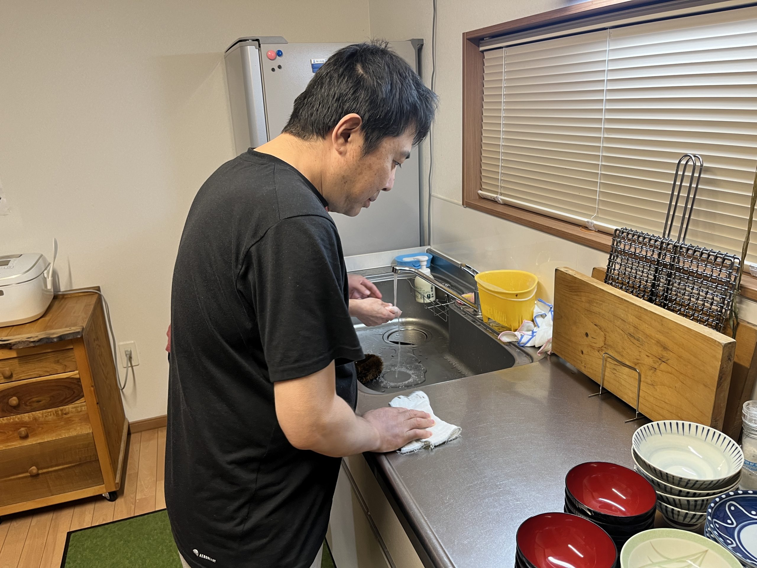グループホームカメラーデンの夕食後は、洗い物当番のメンバーがみんなの食器をきれいに洗います!