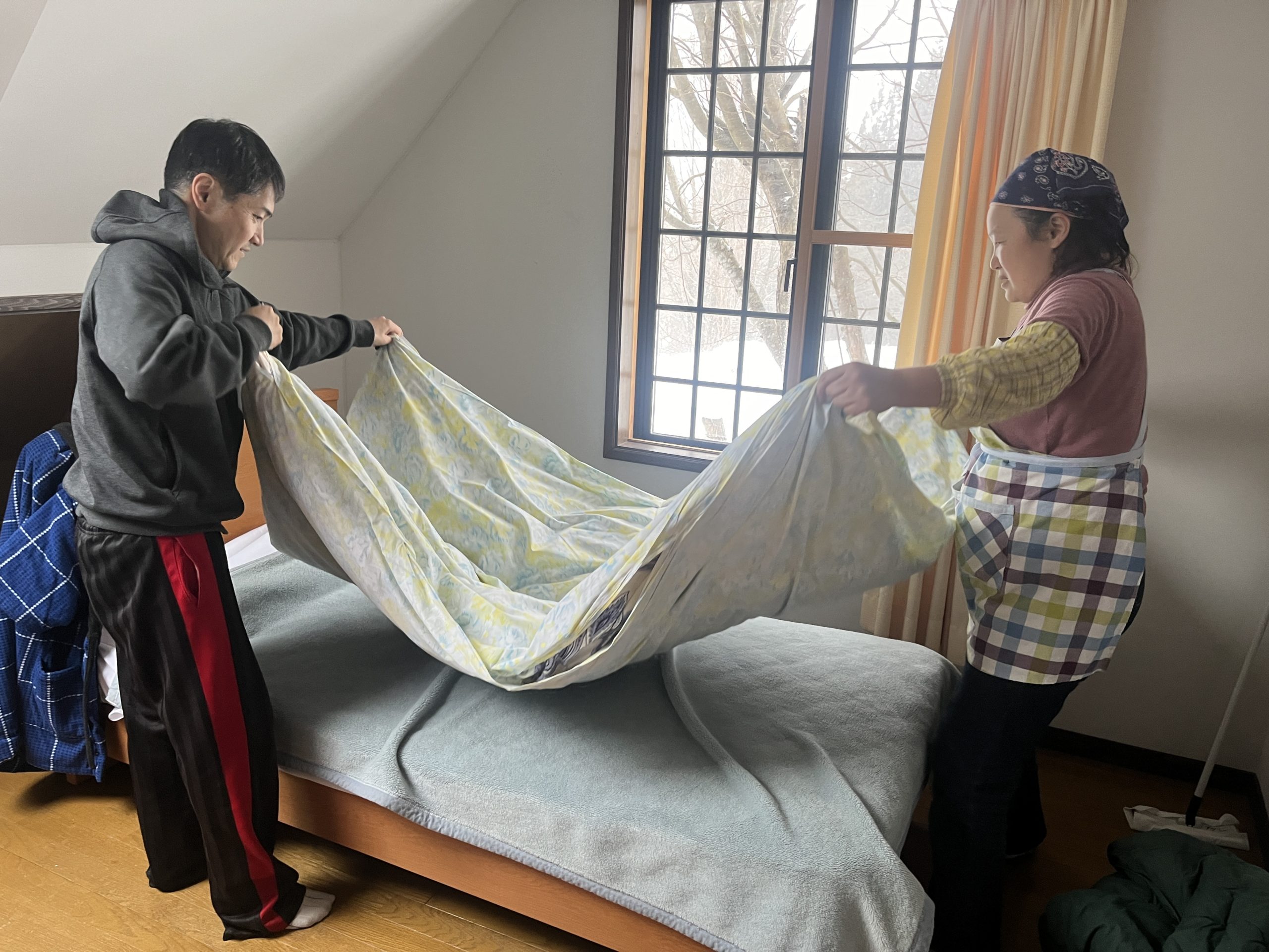 そして、日常生活では毎週木曜日に秋田基準寝具さんからのリネン(寝具)を利用者・職員が協力して交換しています!