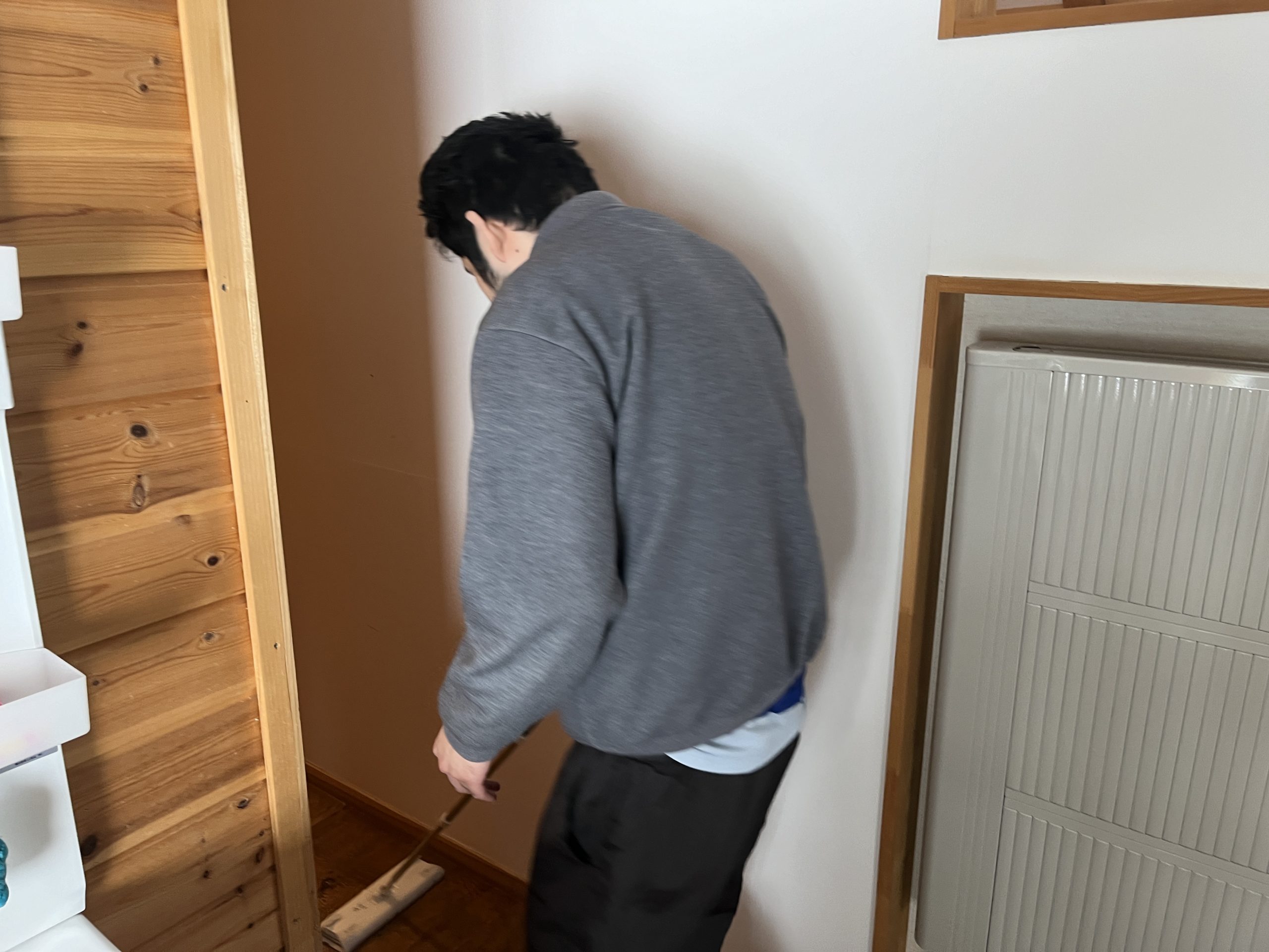 恥ずかしいのか、掃除を背中で語っています(笑)