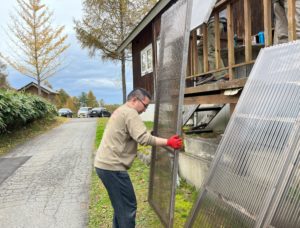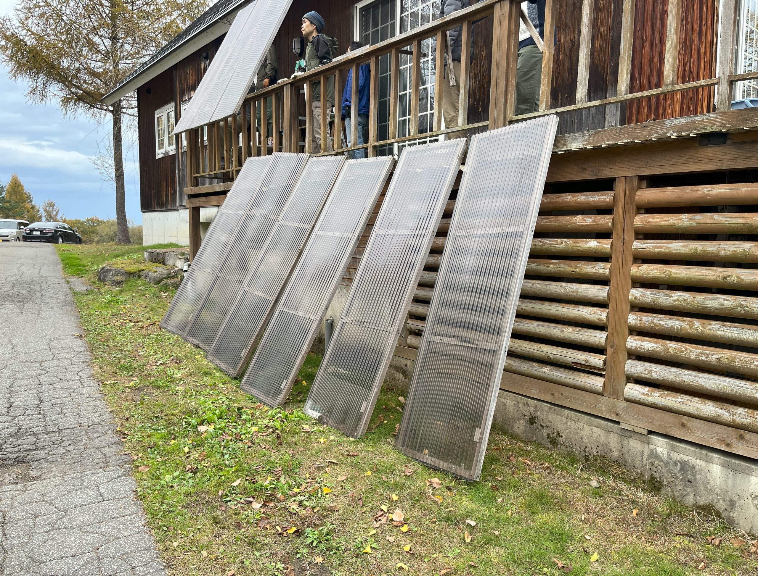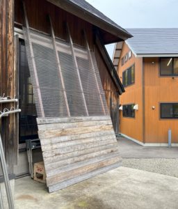 下はグループホームの冬囲い、通称スライディングですが…