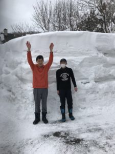 2人が手を伸ばしても届かない雪壁の高さ!!