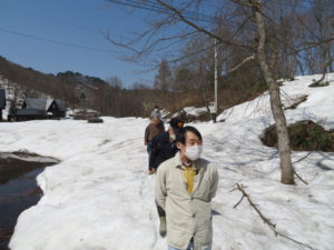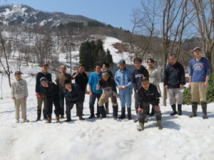 最後は湯沢市皆瀬を代表する名峰・兜山をバックにみんなで記念撮影!