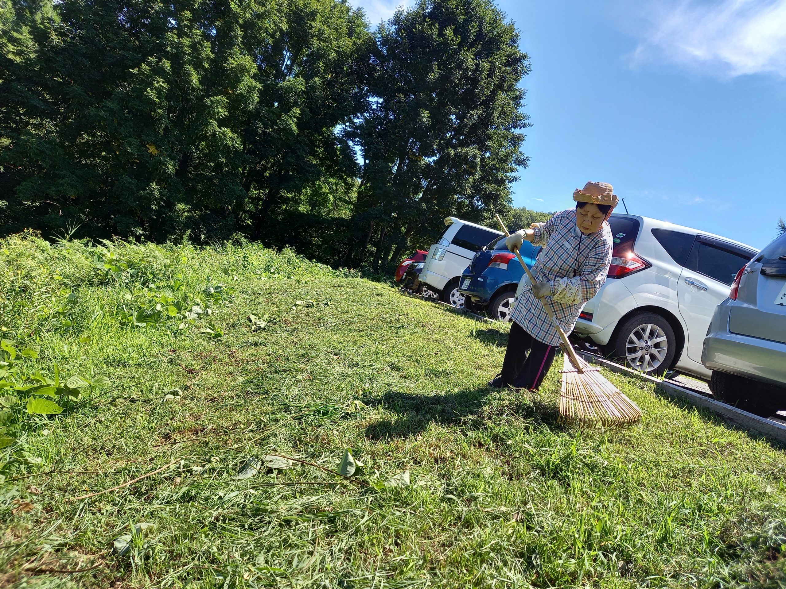 外で作業を行うには危険な暑さが続き、休憩をこまめに行い、日陰でできるように工夫し