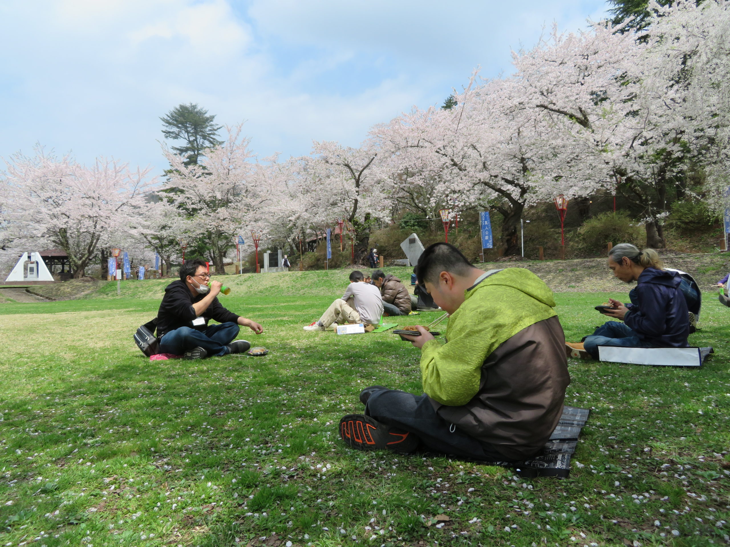 そんななか、毎年恒例の工房くまごろうのお花見レクリエーションを真人公園にて行いました!