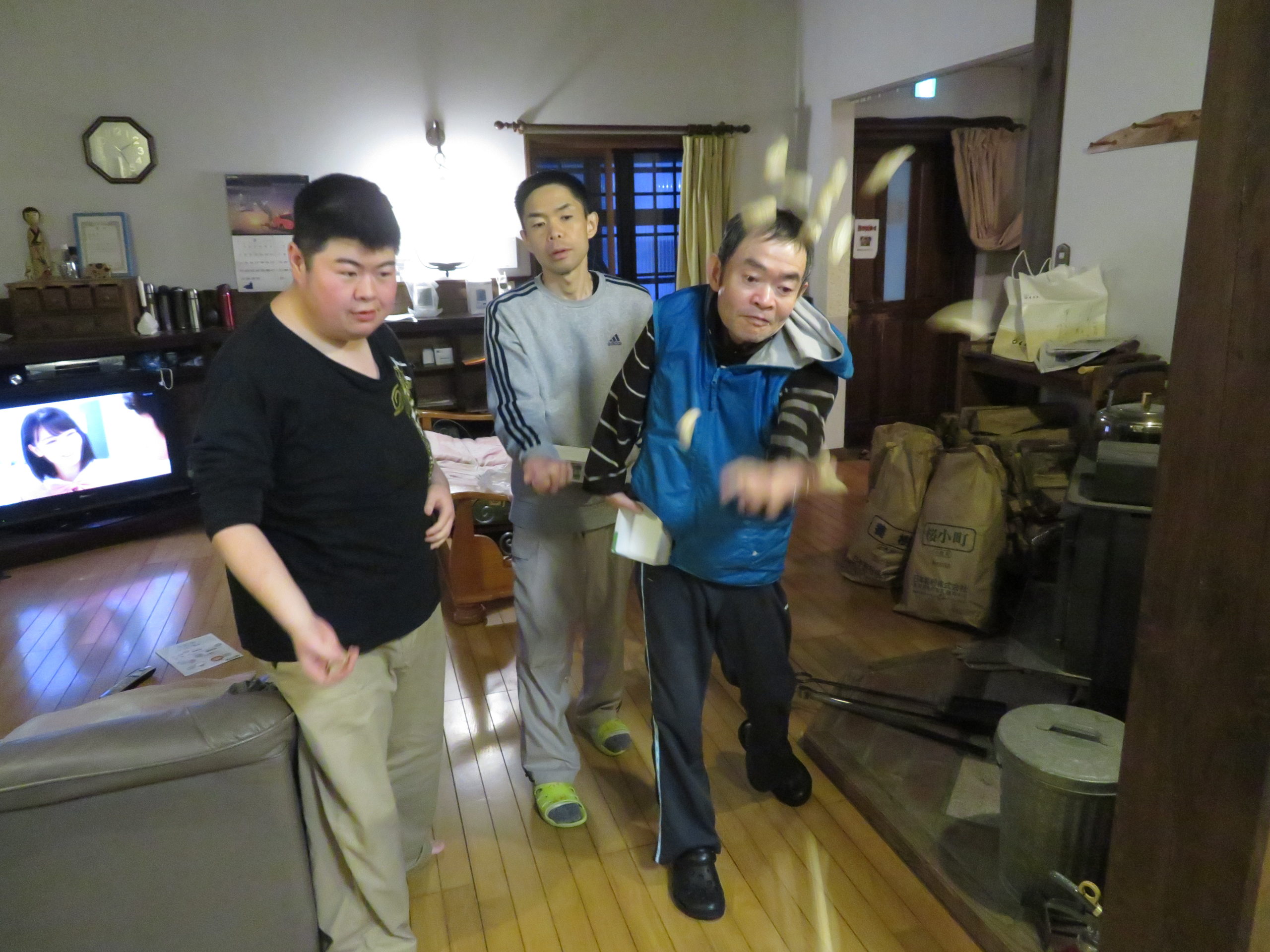 食事の前に豆まきを行っていますが、カメラーデンでは落花生を撒いています。地域によって大豆か落花生かなど違いがあるそうですが、私(広報柴田)の家は大豆です(^^)/