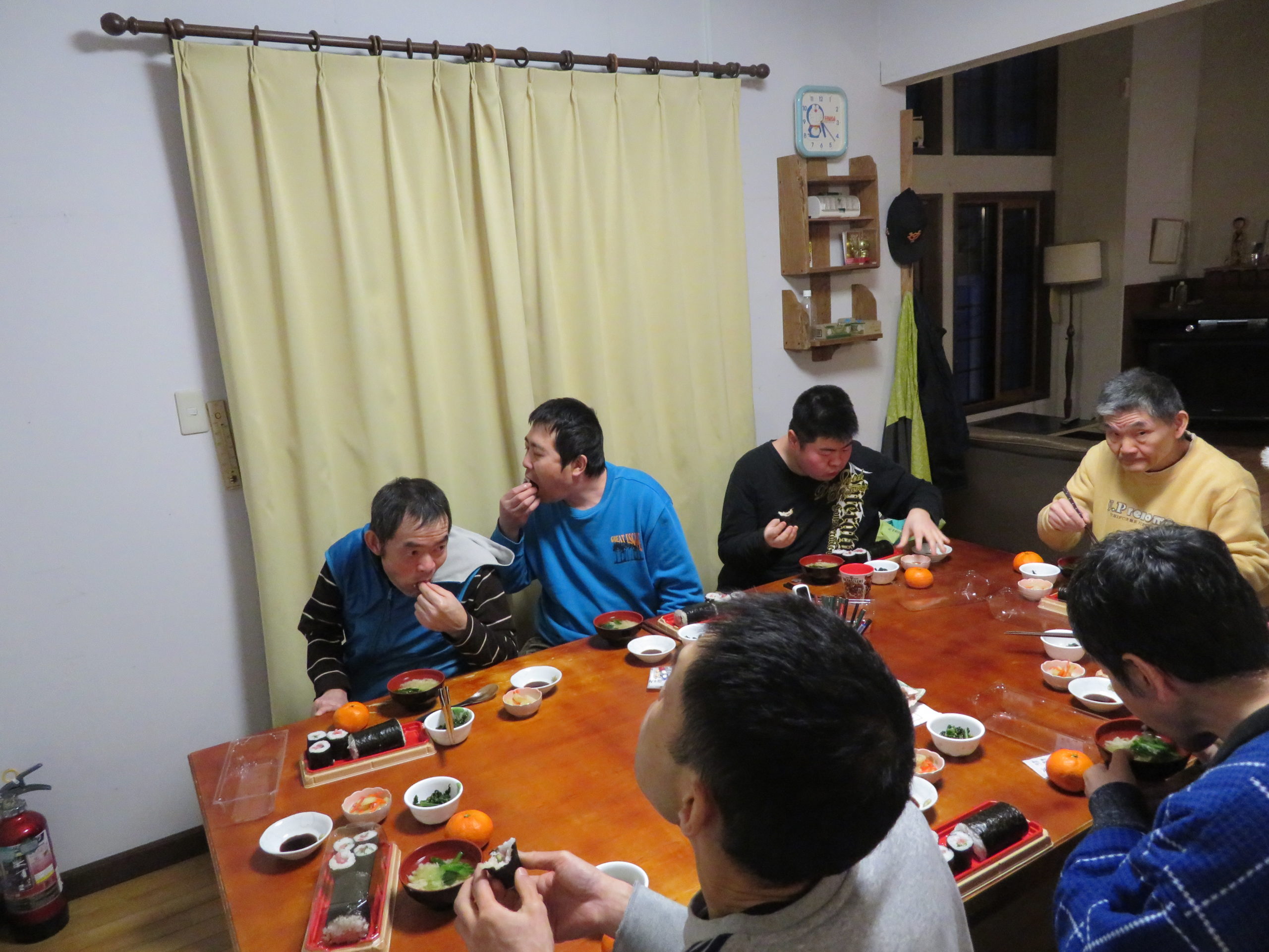 食べ方はそれぞれ恵方を向いていて食べる人もいれば、いつものように食べる人もおりそれぞれです。