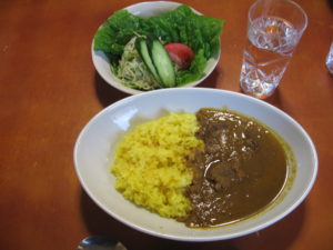 木曜日の夕食は定番のカレー!柔らかく煮込んだ、味の濃いマトンをふんだんに使った一品!