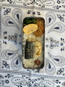 水曜日のお昼は焼鯖弁当!皮が金色に輝いて見えます!