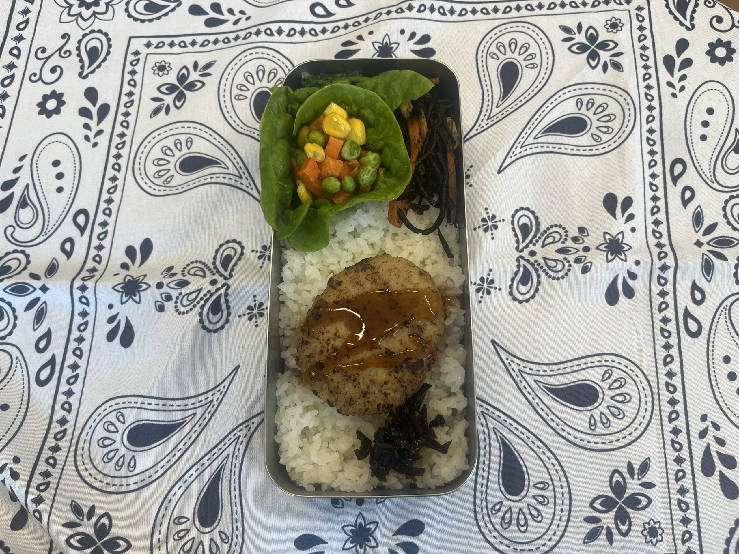 火曜日の昼はハンバーグ弁当!彩りあざやかです!
