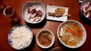 2017年の仕事納めの夕食はいつもより多いタコの刺身でした。
