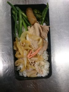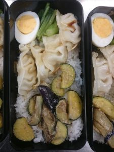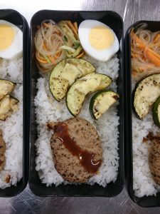 ズッキーニのチーズ焼きとハンバーグの弁当です。