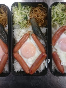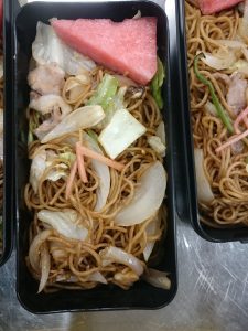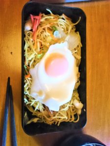 業務用オーブンで作った卵のせ塩焼きそばです。
