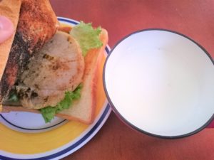 マーガリンではなくマヨネーズにしました。トーストしたパンにはマヨネーズも合います。