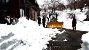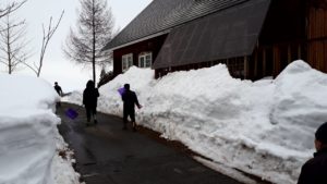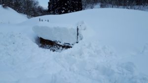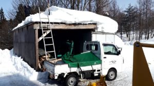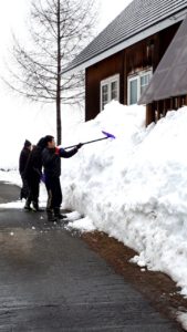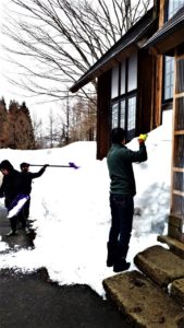 急に風が強まる時もあるため、外での作業はデッキの雪下ろしだけやりました。