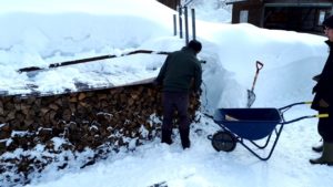 雪に埋まったラックを掘り出して、薪を地下室に運びました。