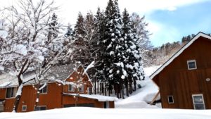 朝10時頃の管理棟です。夜の間にたくさん積もりました。