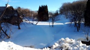朝は10cmくらい雪が積もっていましたが、日中は晴れていたので散歩に行ってきました。