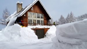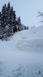 屋根からの落雪で窓がふさがりそうな所の雪下ろしをしました。