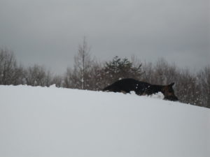 明日以降の大雪で歩けなくなる前に、雪の上を散歩しにいきました。